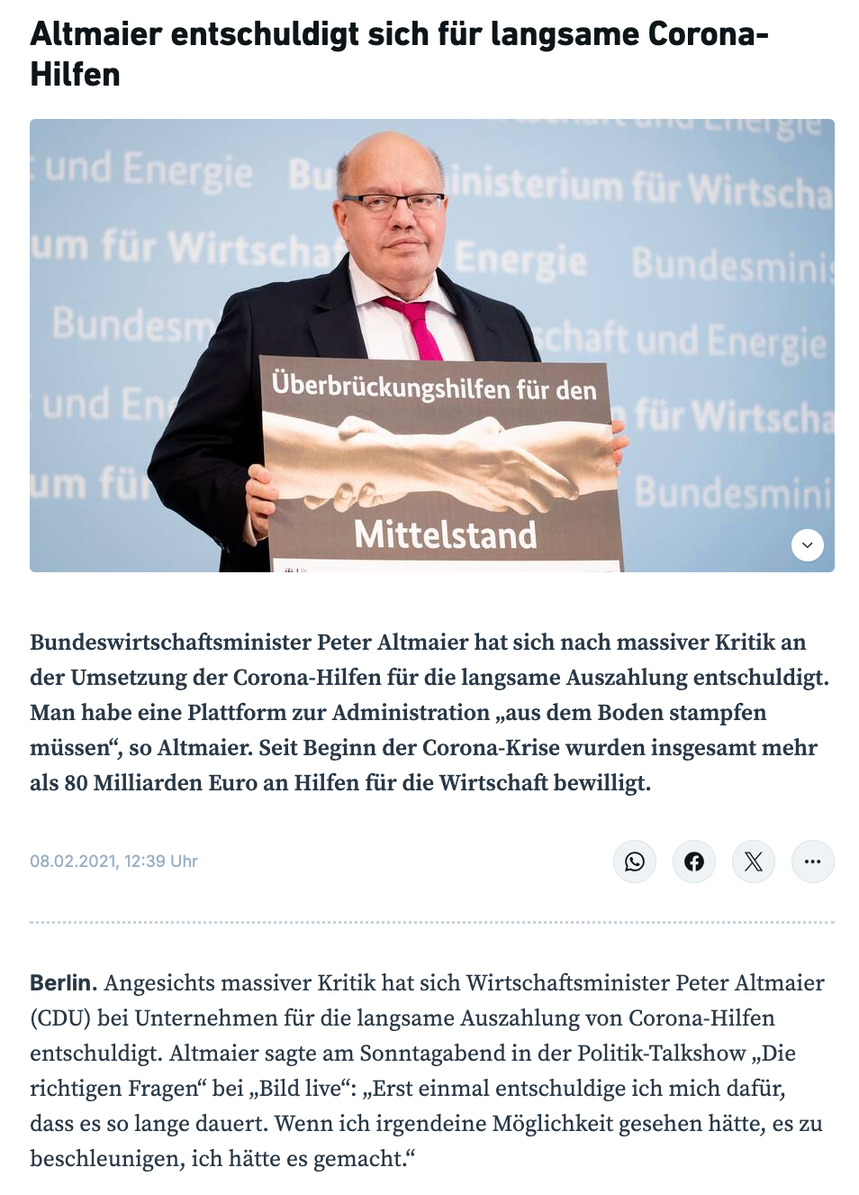 Die Nachricht auf alle gewartet haben. Die Politik entschuldigte sich und es wurden 80 Milliarden an Hilfen für die Wirtschaft bewilligt und die AKTION
